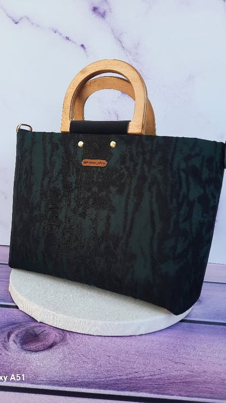 کیف دسته چوبی با پارچه ژاکارد با عرض 35وارتفاع 22.بسیار جادار برای استفاده روزمره .دهانه کیف زیپ میخورد .