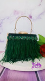 کیف مجلسی خاص با بدنهی سبزِ مخملی و تزئینات چشمگیر. طراحی شکیل با دستهی طلایی که برای مهمانیها و مراسمهای خاص مناسب است.