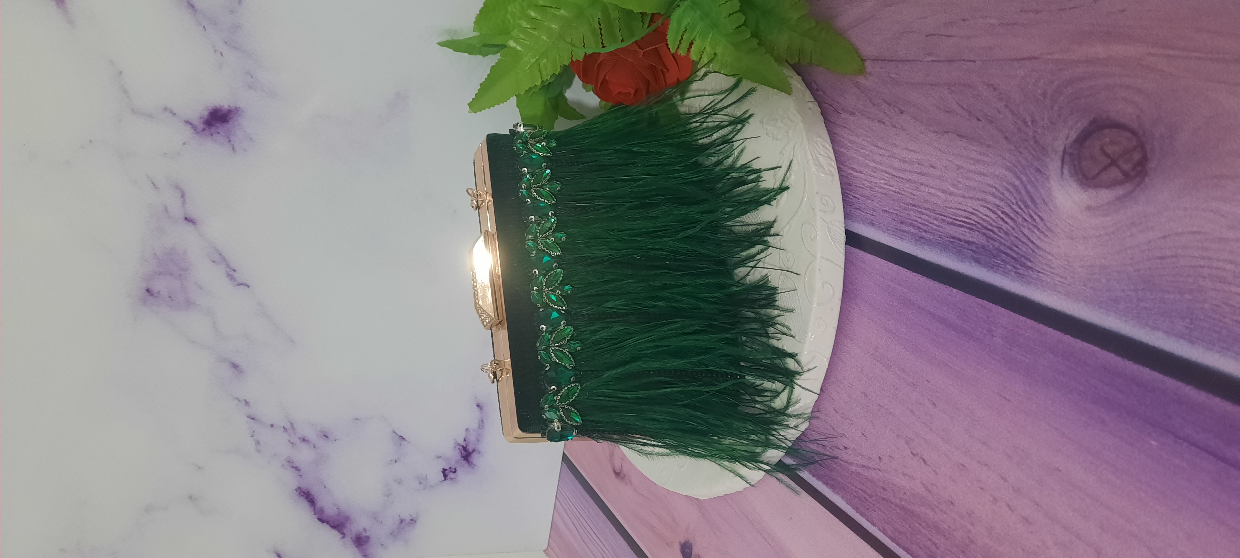 کیف مجلسی خاص با بدنهی سبزِ مخملی و تزئینات چشمگیر. طراحی شکیل با دستهی طلایی که برای مهمانیها و مراسمهای خاص مناسب است.