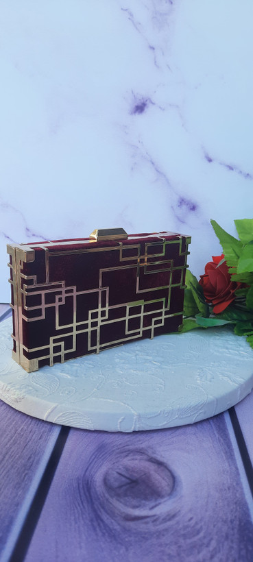 کیف کلاچ مشبکی قاب طلایی با رنگ پارچه مخمل زرشکی شاین