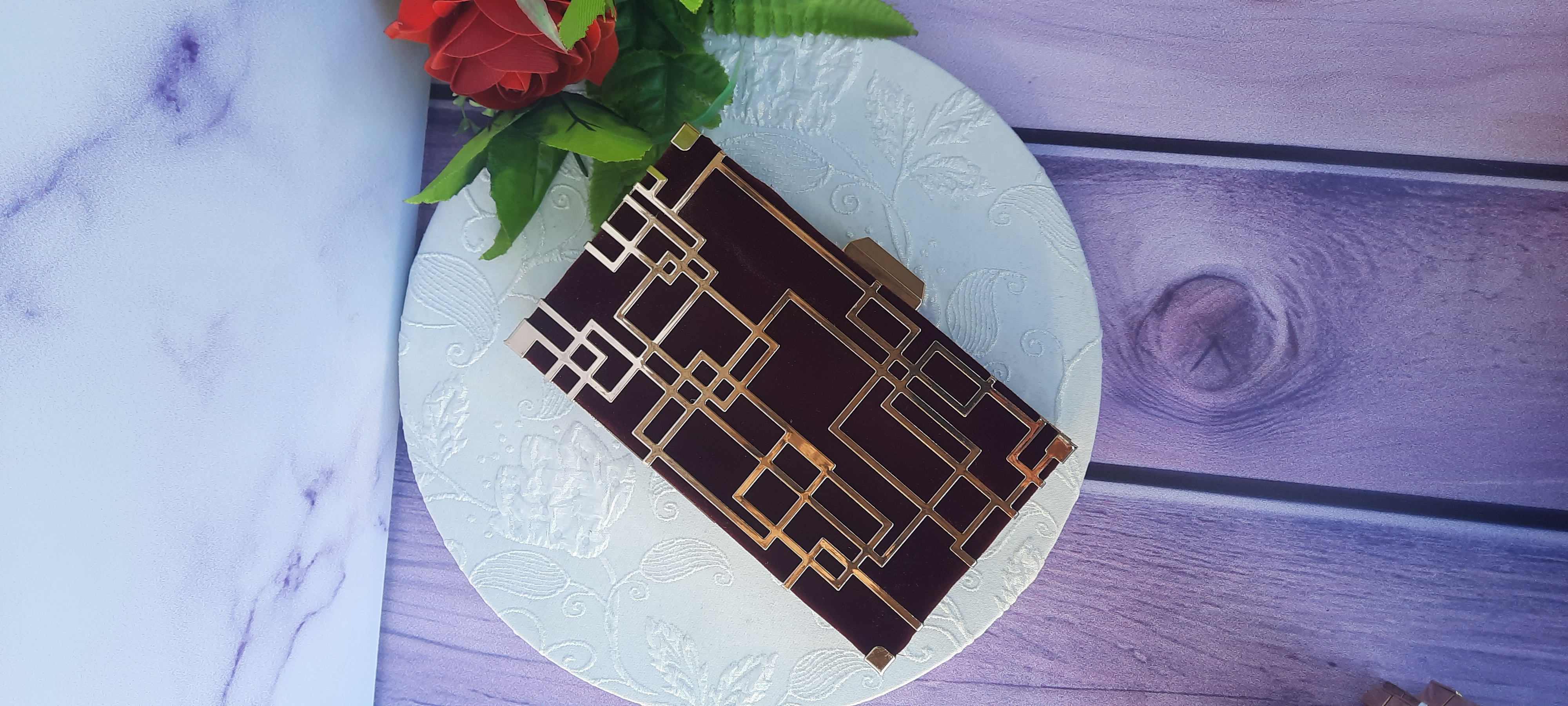 کیف کلاچ مشبکی قاب طلایی با رنگ پارچه مخمل زرشکی شاین