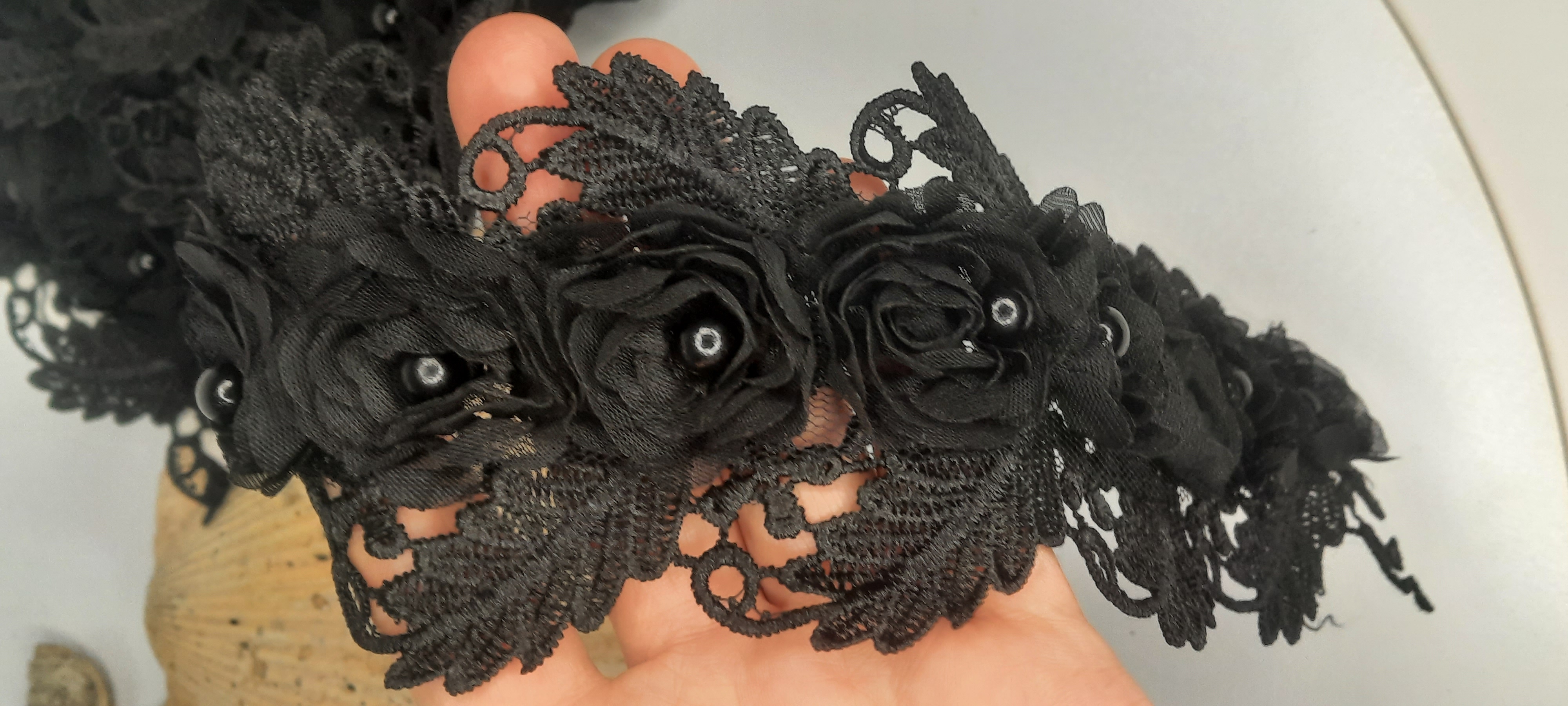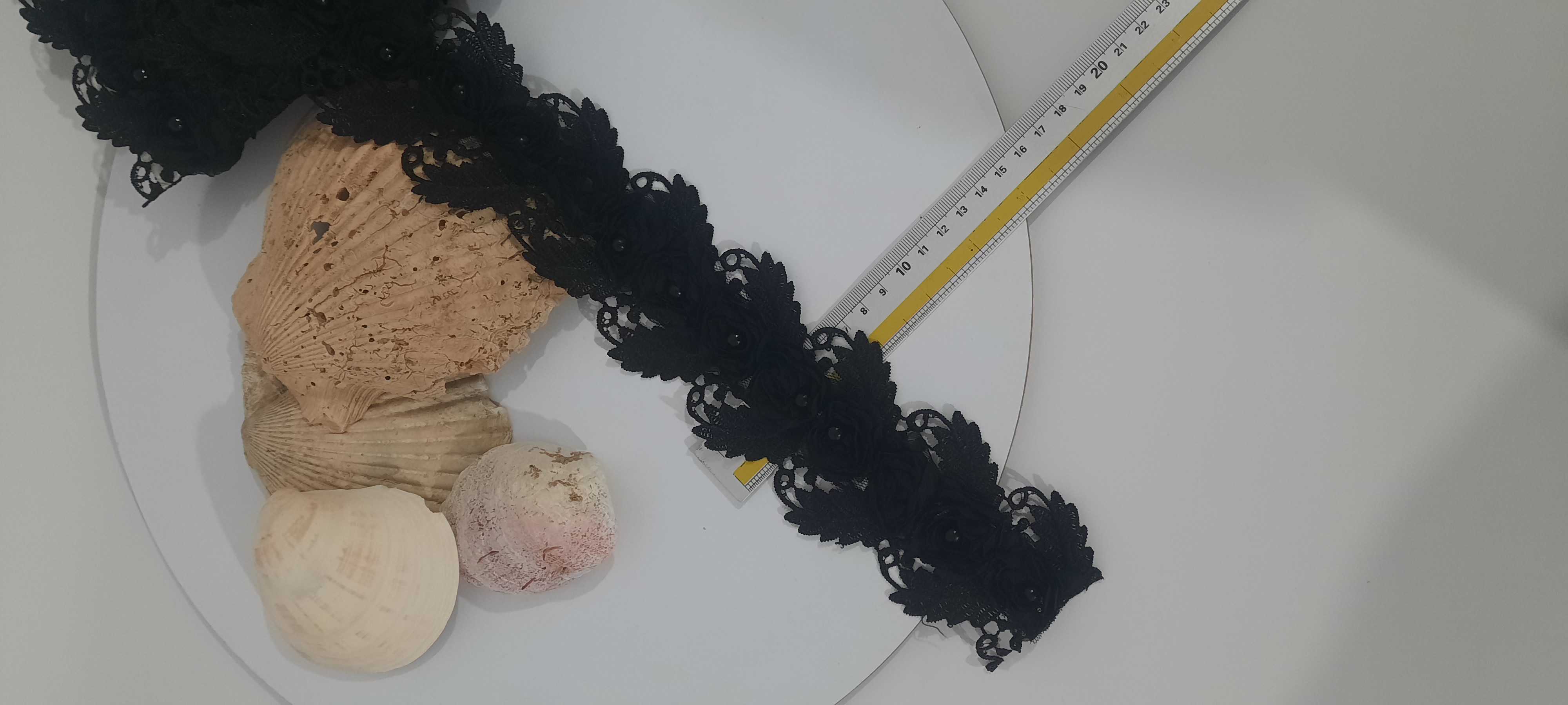 نوار دانتل گل برجسته مشکی متری عرض ۷ سانت