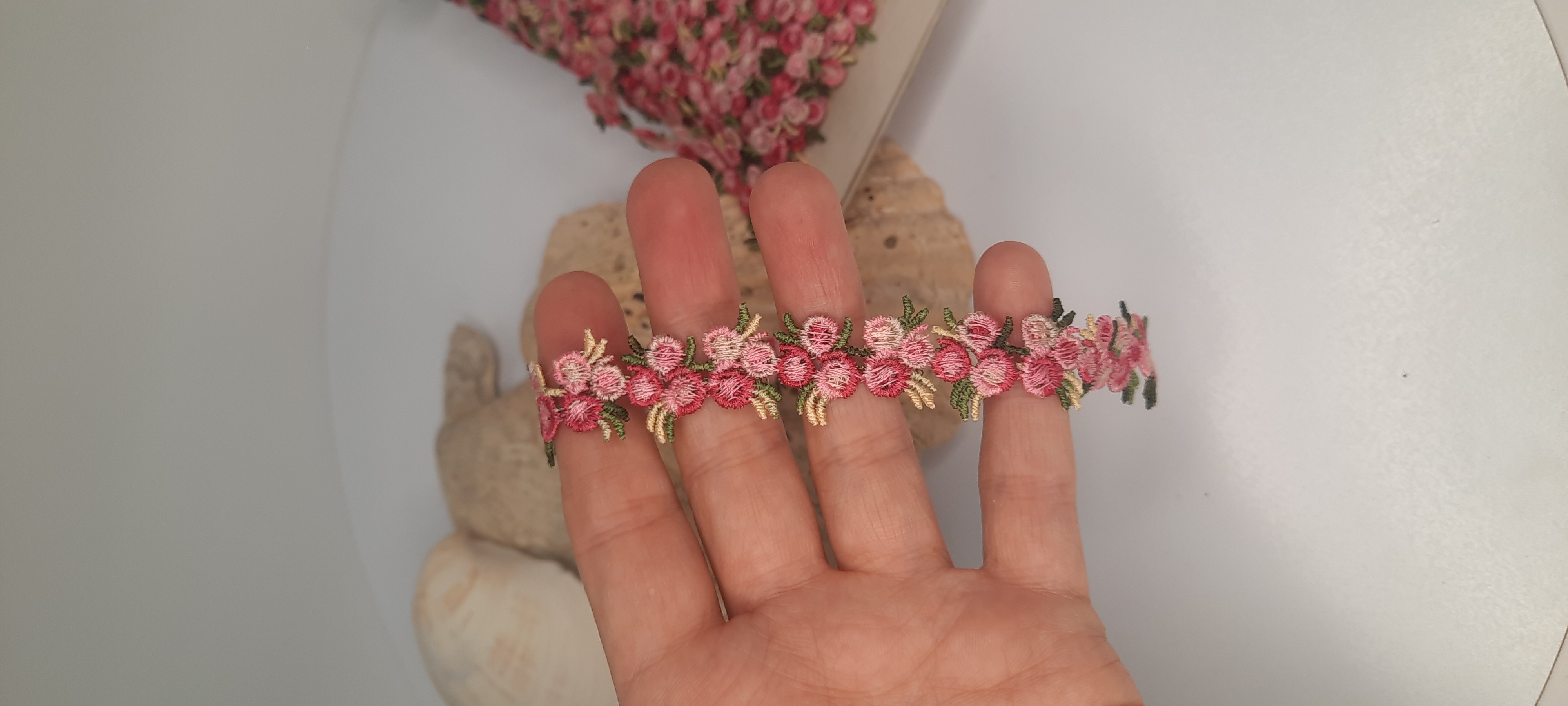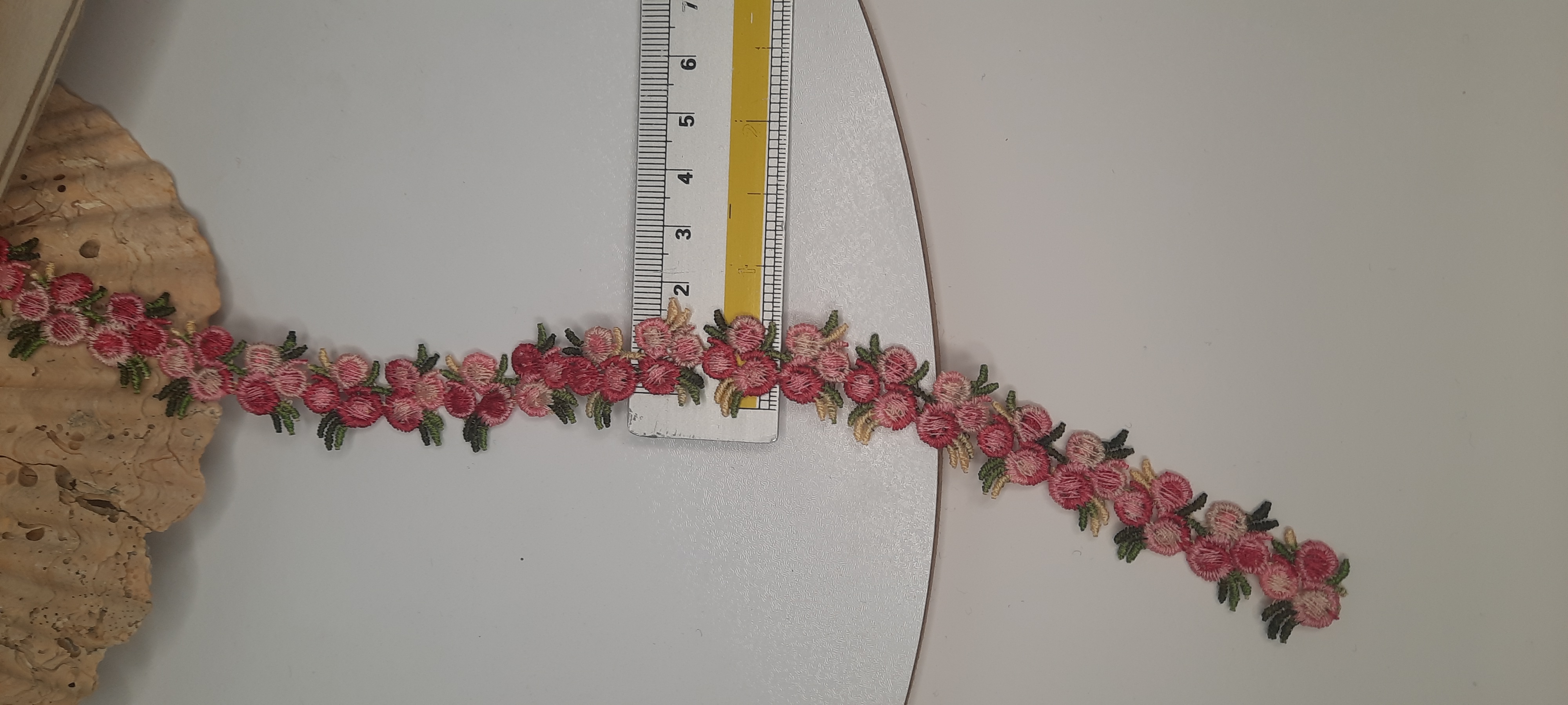 نوار دانتل گل ریز صورتی گلدوزیشده متری