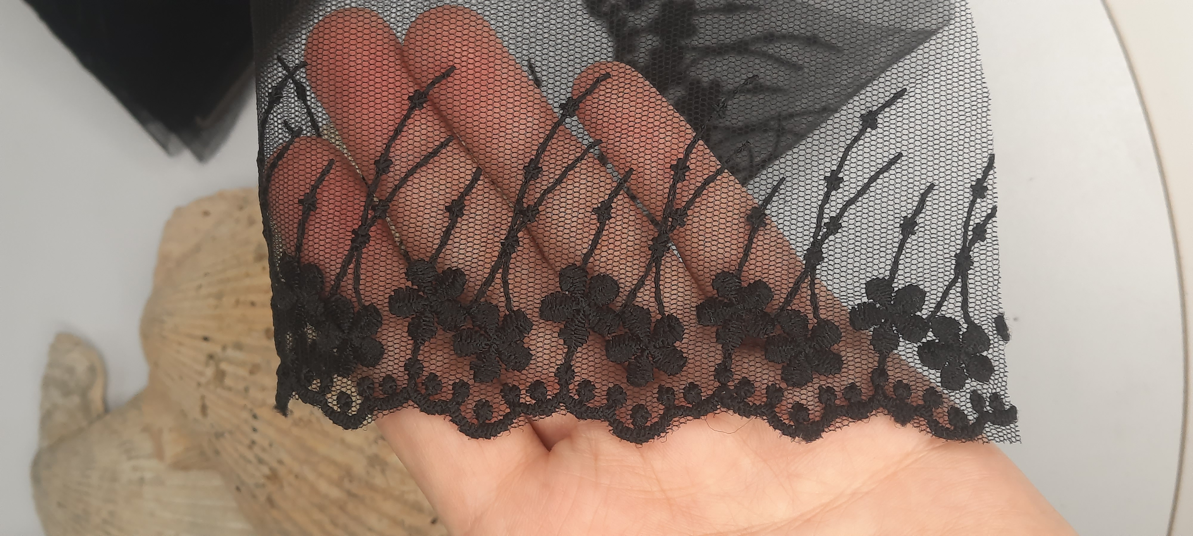 نوار دانتل مشکی گل‌دار حاشیه‌دار | عرض ۹سانتی‌متر | ظریف و مجلسی